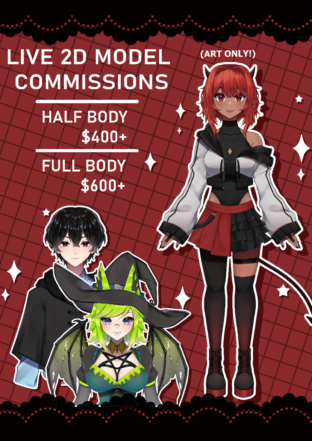 If you have a problem with any of these terms, they may be changed if discussed with me prior to paying for your commissioned piece.1. GENERAL TERMS- By commissioning me, you agree to abide by these terms.- All drawings may or will include a subtle watermark that you may not remove.- I might record the drawing process and post it on my youtube.- Prices are subject to change based on demand and complexity.- I have the right to reject any order that I do not feel comfortable drawing for any reason.2. PAYMENT- Currency accepted are only USD and PHP, with PHP being more preferred. Payment can be done through PayPal or any Philippine payment service such as Gcash or bank transfer.- Commissions can be paid either 100% upfront or split 50% upfront and 50% after sketch approval.- Don't send me any payment before I have agreed to give you a slot and requested you to send me the payment.3. PROCESS AND DELIVERY- I will notify you when I have started on your commission and you, therefore, lose the rights to a refund (see point 7 further below for more info on refunds)- While I'm working on your commission I will accept revisions for the sketches I send.- The amount of revisions can vary depending on the complexity of the work.- During the commission, you will see work-in-progress and these images may include a watermark that'll be smaller than the finished piece.- The time it takes to finish your commission varies 1 week - 3 months depending on factors such as health, the complexity of the commissioned piece, other work and con seasons.- If anything comes up that will slow the progress of the initially estimated delivery time I will let you know asap.- Once the piece is finished you will receive the full-resolution image via a google drive link. Note that there is no physical product.4. REVISIONS- You get 3 rounds of changes on the commissioned piece included in the price.- Major revisions are limited to 3 (posing, clothes, design, etc.) and are only done when still sketching.- Minor revisions are unlimited, given they're not too many (coloring, small details, effects, filters, etc.) and can be done after the final output or at any state of the commission.- A fee will be added if you want something changed on the final drawing - unless a misunderstanding from my side has been made.- If you wish for me to change something in the drawing you have previously approved, I will charge you a fee to change it. The amount of the extra charge depends on the change you want me to make and is usually based on an hourly wage.- If your reference is unclear to start with, changes will come at an extra charge.5. COPYRIGHT / USAGE POLICYI, Ayukiri (the artist), claim the rights to the produced drawing, not the buyer. Therefore I am allowed to use the copyrighted artwork to:- Promote myself with it everywhere- Publish books with it (artbooks, etc.)- Display it everywhere to my liking (website, social media, etc.)- Post it wherever I wantThe buyer is allowed to:- Use the commissioned piece for personal use unless agreed otherwise (you can upload it on all your social media profiles, forums, etc.)- Print the artwork and claim the character(s) as their own, but not the artwork itself.- Use the artwork to promote themselves. You are not forced to give me credit when you post it but it is very appreciated.- Use the artwork on their Youtube channel and in monetized videos as long as the artwork itself is not the main subject for the earnings.The following is considered copyright infringement:- For normal commissions: Reproducing/using the copyrighted artwork commercially - means making money off it in any way. (selling prints, putting it on merch, etc.) For Live2D commissions: For indie VTubers, the commercial fees are already included in the price.- Claiming the artwork as your own- Removing my signature from the artwork- Altering the artwork without my consentI reserve the full rights to the image and it's use/distribution unless otherwise agreed upon (rights to the image for your own non-personal use may be purchased at any time).6. CUSTOMER SATISFACTION- I will do everything I can to make my clients happy!- If you have a problem with anything in regards to the commissioned piece please tell me right away so we can find a solution together.- I am willing to change some of my terms for you if you ask before I start on your commission. If you, e.g., do not want me to post your art anywhere, we can discuss this.7. REFUND / CANCELLATION POLICY- The buyer is not allowed a refund once I started working on the commission.- If for any reason I am unable to start your commission you will receive a full refund.- If you cancel your order before I started it, you can get a full refund.- If you are getting a refund, do not request a Paypal chargeback. I will transfer the money back to you myself.- If you request a Paypal chargeback at any point when you were not allowed to ask for a refund you will lose all beforementioned rights to the commissioned piece and I will have the full right to profit further from it in any way. I will decline the chargeback and supply Paypal with our conversations in which we talk about the commission as evidence that I have completed work for you. Furthermore, you will be blacklisted for commissioning me again.- If the buyer breaks any of the points stated above they will lose all the beforementioned rights to the artwork commissioned by me, Ayukiri (the artist), and I will have the right to profit further from the commissioned artwork in any way I see fit. If you have a problem with any of these statements, they may be changed if discussed with me prior to paying your commissioned piece.What do you get?- Drafts/mockups that you must decide which one I should continue with (depending on the complexity of the commission there might be fewer or more drafts)- Sketch and/or final sketches that you must accept before I continue the work- Insight and involvement in color plan (depending on the complexity of t